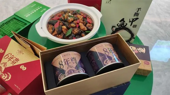 甲鱼文化展示馆,陈列了九肋鳖、砂鳖以及生长时长不同的中华鳖 ,还陈列了各式各样的甲鱼产品,展示了甲鱼产业的历史发展和以甲鱼为食的饮食文化。